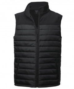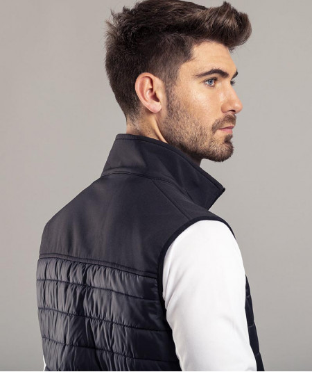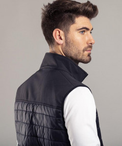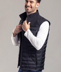 Chaleco impermeable y transpirable en combinación de materiales soft shell y poliéster.