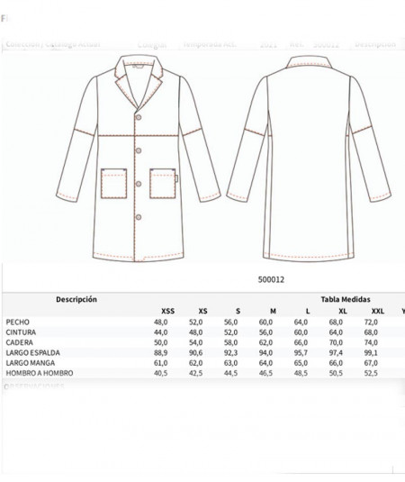 Bata profesor manga larga y con botones NEW YORK