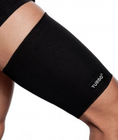 Muslera de protección TURBO que aporta un aumento de calor en la zona, aliviando el dolor y provocando un incremento del riego sanguíneo con la consiguiente mayor oxigenación de los tejidos, rehabilitando así el músculo lesionado.