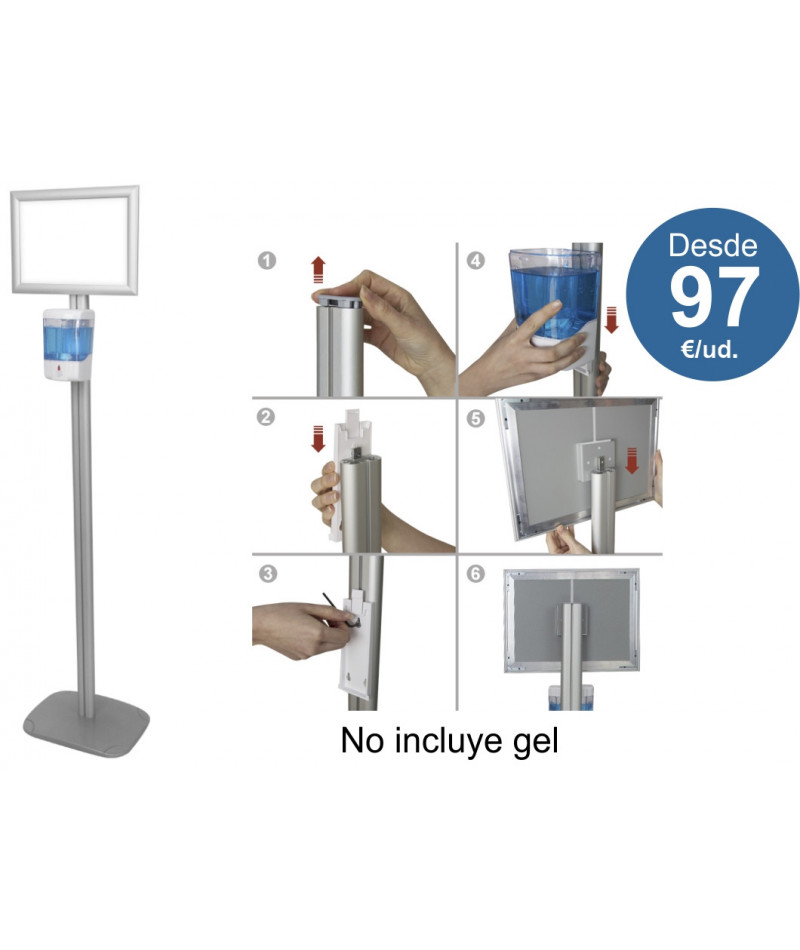 Soporte Dispensador de Gel Hidroalcohólico Automático con Marco A4