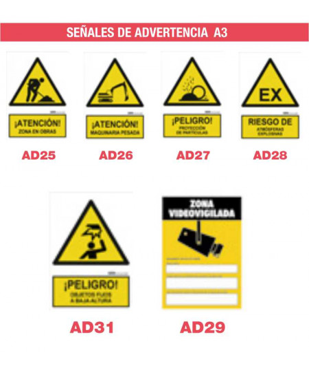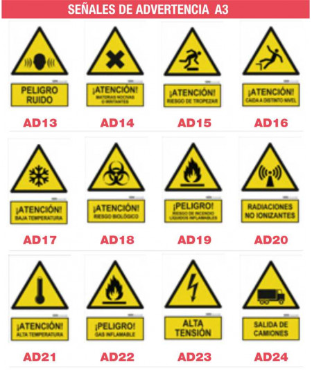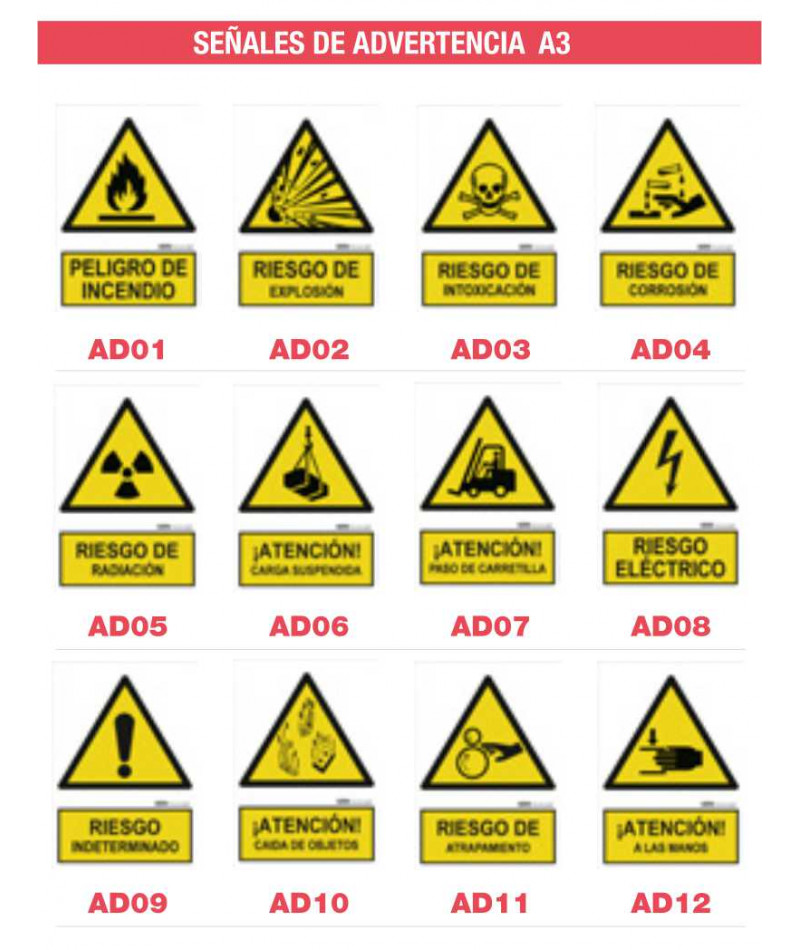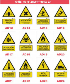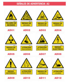 Señal en glaspack 0,7 mm Advertencia según el Real Decreto 485:1997 y la norma UNE 1115:1985